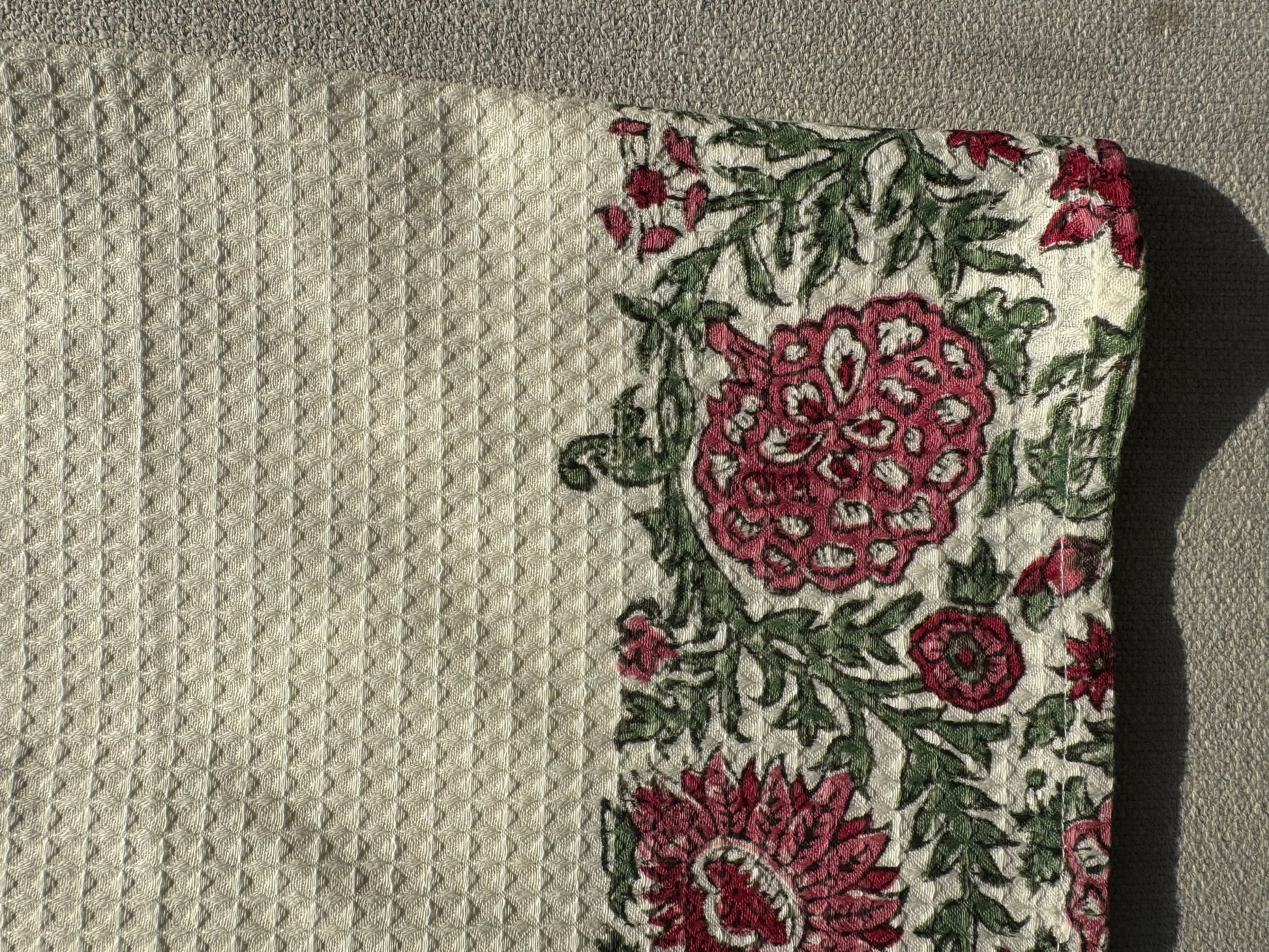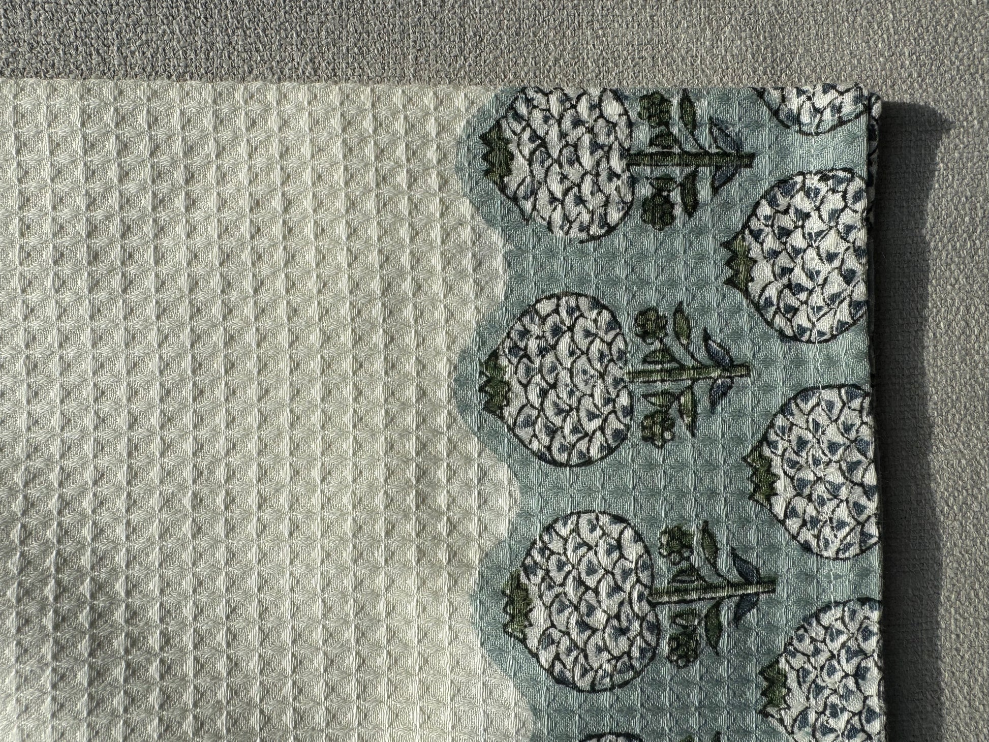 Our waffle tea towels feature block printing in four distinctive designs.